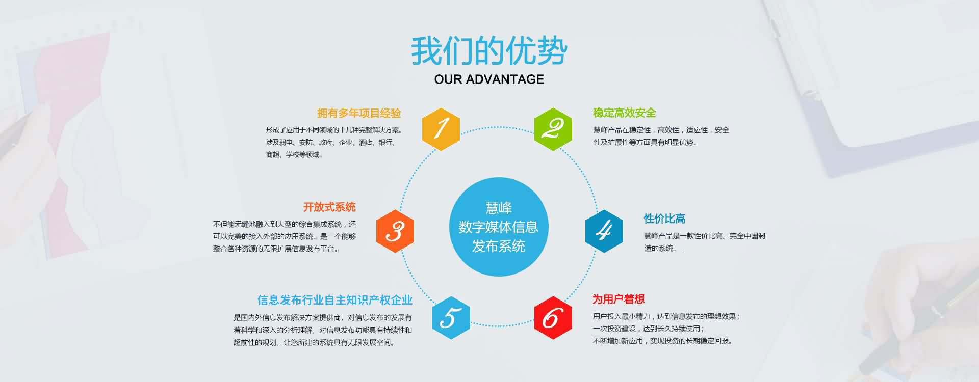 公司本著互惠互利,誠實信用的原則,真誠面對用戶,并愿與社會各界展開廣泛的合作。 公司現已是國內的數字媒體信息發布系統解決方案提供商,產品涉及大中型企業、商業地產、各級黨政機關、軍隊、司法、信息通信、金融、醫療、教育、能源交通、公用事業領域。